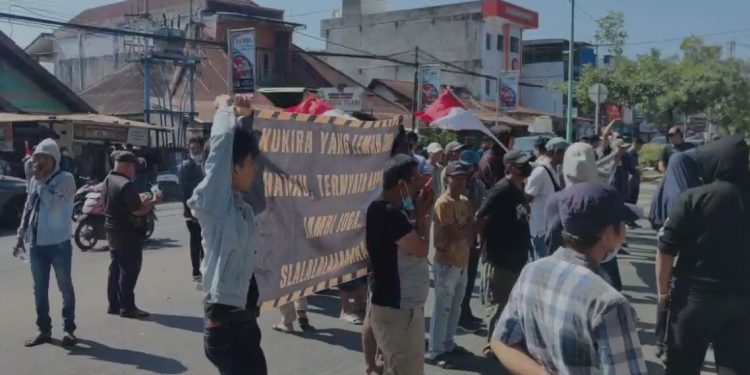 AMPAR.ID, JAMBI – Puluhan massa yang tergabung dalam Aliansi Keadilan Bersama Polri (AKBP) menggelar aksi unjuk rasa di depan Markas Kepolisian Daerah (Polda) Jambi, Senin (21/7/2025).