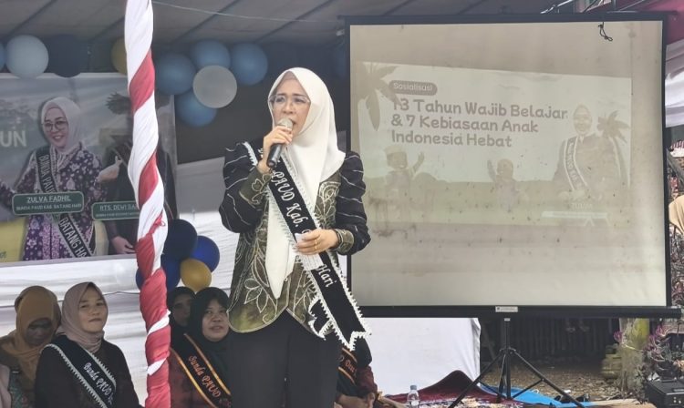 AMPAR.ID, Batanghari – Bunda PAUD Kabupaten Batang Hari, Zulva Fadhil membelah derasnya aliran Sungai Batanghari menggunakan perahu ketek guna menjamin tersampaikannya informasi terkait Program 13 Tahun Wajib Belajar dan 7 Kebiasaan Anak Indonesia Hebat di Desa Terusan, Kecamatan Maro Sebo Ilir pada Selasa (07/10/2025).