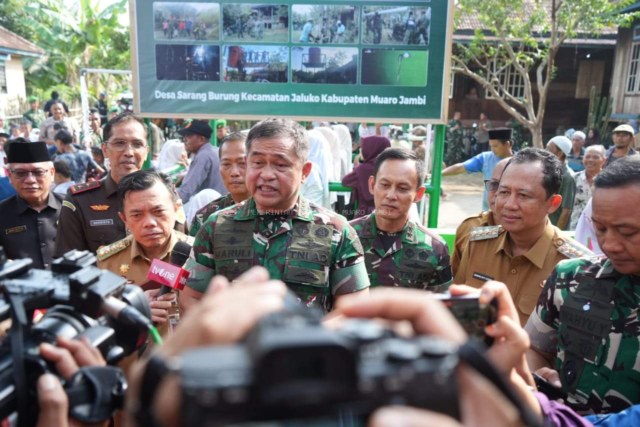 Kunjungan ini dalam rangka peresmian Sumur Bor TNI Manunggal Air Kodim 0415/Jambi Tahun 2025. Bupati Bambang Bayu Suseno mengucapkan terima kasih kepada Kasad Jenderal TNI Maruli Simanjuntak atas bantuan sumur bor yang sangat bermanfaat bagi masyarakat Muaro Jambi, khususnya Desa Sarang Burung.