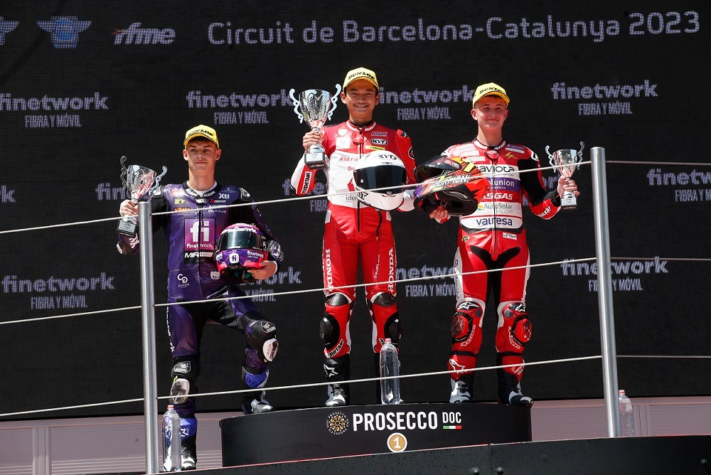 AMPAR.ID, Jakarta – Pebalap Astra Honda Racing Team (AHRT), Fadillah Arbi Aditama berhasil menorehkan sejarah balap Indonesia dengan meraih podium tertinggi ajang balap FIM JuniorGP. Untuk pertama kalinya dalam kejuaraan balap di benua Eropa, bendera Merah Putih berkibar paling tinggi diiringi lagu Indonesia Raya pada putaran kelima balap kedua ajang kejuaraan balap dunia junior ini di Circuit de Barcelona-Catalunya pada Minggu, 16 Juli 2023.
