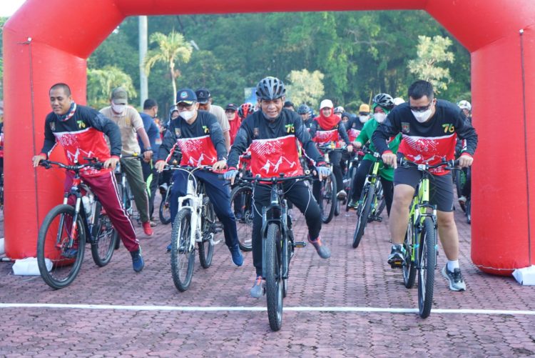 AMPAR.ID, ASAHAN- Berbagai kegiatan dilaksanakan oleh Pemerintah Kabupaten Asahan untuk memeriahkan peringatan Hari Jadi Kabupaten Asahan ke-76 Tahun, salah satunya kegiatan Gowes Bareng di Halaman Kantor Bupati Asahan (Start) dan penanaman 1.000 pohon di Hutan Kota Taufan Gama Simatupang Kisaran yang juga menjadi titik finish Gowes Bareng tersebut, Minggu (13/03/2022).