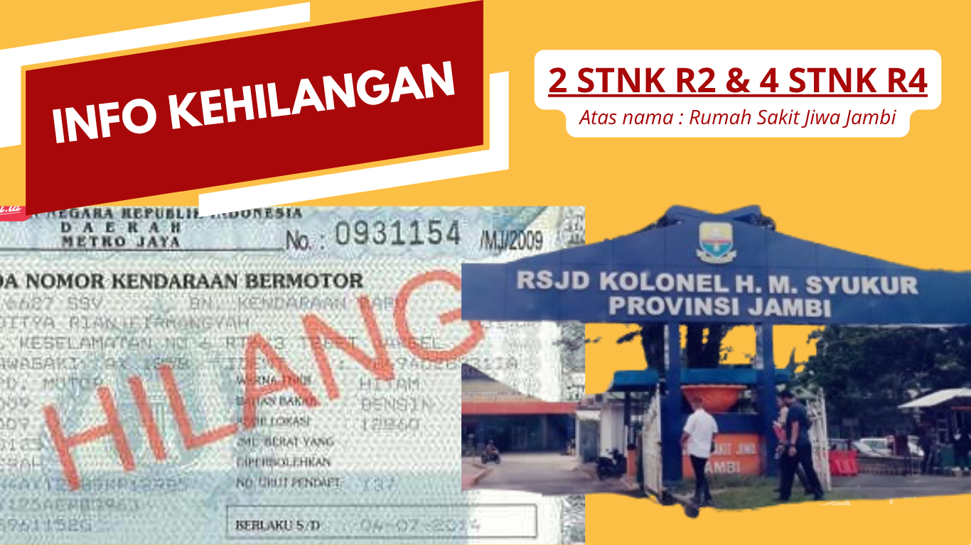 AMPAR.ID, JAMBI – Rumah Sakit Jiwa Daerah mengumumkan atas kehilangan empat lembar STNK kendaraan R 2. Atas kejadian ini, salah satu pegawai nya atas nama Aris Piyanto telah medantangi Polsek Telanaipura dengan maksud dan tujuan membuat Surat Keterangan Tanda Laporan Kehilangan (SKTLK).