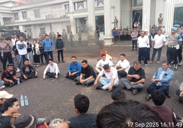 AMPAR.ID – Guyuran hujan tak menyurutkan langkah ratusan massa yang tergabung dalam Aliansi Suara Rakyat Jambi untuk menyampaikan aspirasi mereka di depan Kantor DPRD Provinsi Jambi, Rabu (17/9/2025) sore.