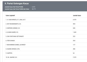 AMPAR.ID, JAMBI – Perolehan suara Caleg Golkar untuk DPRD provinsi Jambi dapil (Jambi 2) Muarojambi – Batang Hari, M Jaffar saat ini unggul dan diprediksi duduk di kursi DPRD provinsi Jambi.