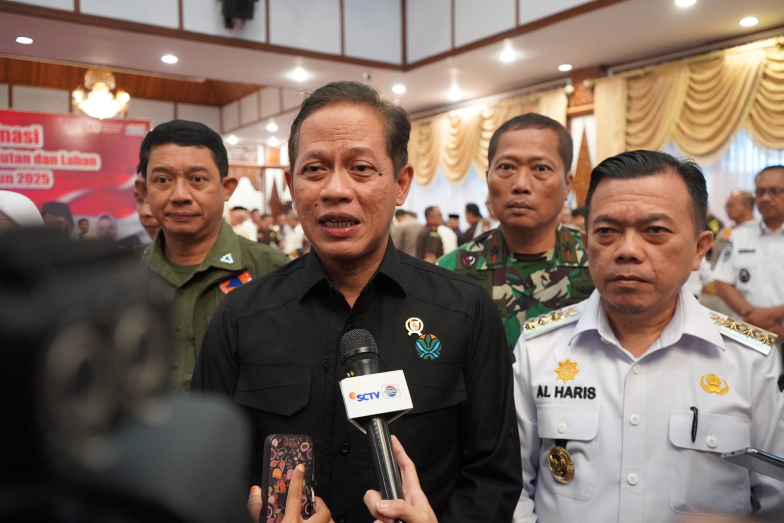 AMPAR.ID, Jambi – Menteri Lingkungan Hidup RI yang juga merupakan Kepala Badan Pengendalian Lingkungan Hidup (BPLH), Dr. Hanif Faisol Nurofiq, S.Hut., hadir di Provinsi Jambi mendengar dan meninjau langsung paparan terkini terkait kondisi kebakaran hutan dan lahan (Karhutla) di Provinsi Jambi dalam Rapat Koordinasi (Rakor) Karhutla Provinsi Jambi Tahun 2025. Rakor yang di moderatori langsung oleh Gubernur Jambi Dr. H. Al Haris, S.Sos, MH ini berlangsung di Rumah Dinas Gubernur Jambi, Rabu (30/07/2025) siang.