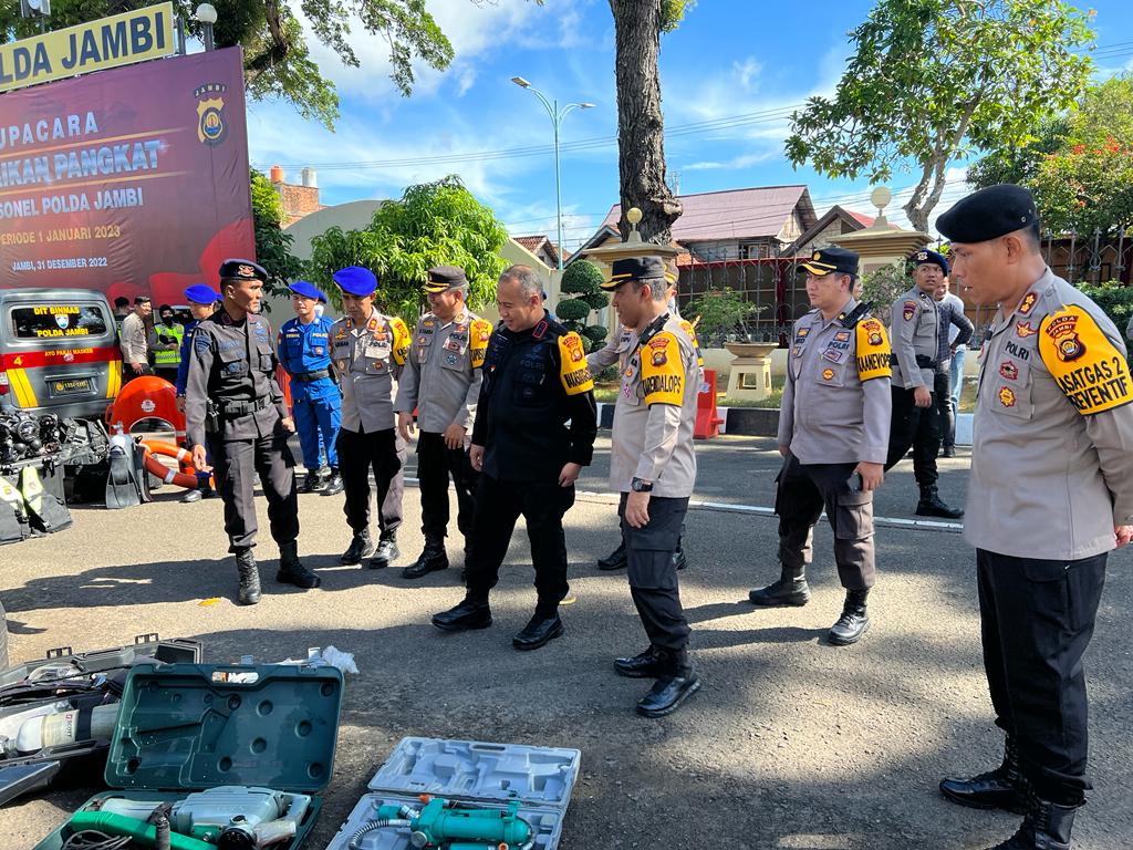 Setelah apel dilanjutkan dengan pengecekan Personil serta Sarpras Satbrimob, Ditpolairud dan Ditsamapta Polda Jambi antara lain :