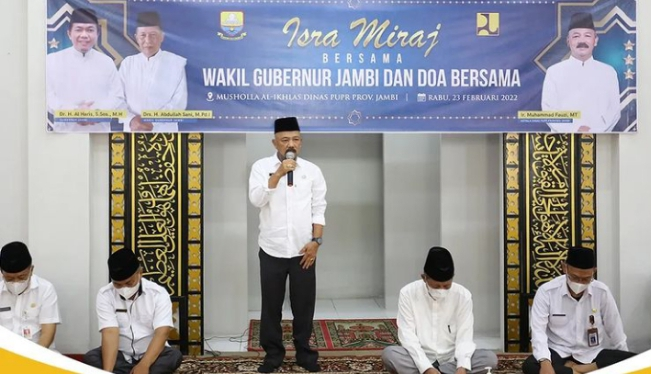AMPAR.ID, JAMBI – Dinas Pekerjaan Umum dan Perumahan Rakyat (PUPR) Provinsi Jambi, menggelar peringatan Isra Mi’raj Nabi Muhammad SAW, Wakil Gubernur Jambi Abdullah tampak hadir dalam acara tersesbut. Rabu (16/2/2022) pagi.