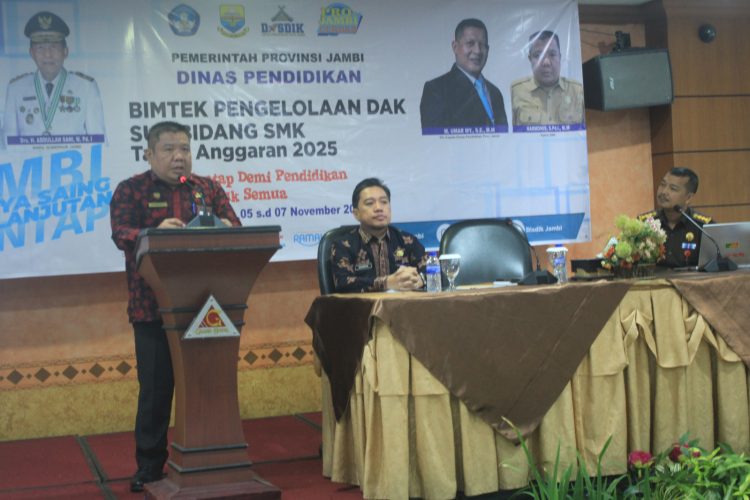 AMPAR.ID, JAMBI – Dinas Pendidikan (Disdik) Provinsi Jambi melalui Bidang Pembinaan SMK melaksanakan Bimbingan Teknis Pengelolaan Peralatan DAK pada tanggal 5-7 November 2025 di Grand Hotel Jambi.