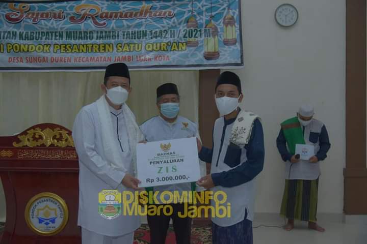 Dalam kesempatan ini, Wakil Bupati Muaro Jambi Bambang Bayu Suseno juga menyerahkan bantuan dari baznas Kabupaten Muaro Jambi kepada pengurus pondok pesantren Tahfidz Satu Quran, Wabub beberapa bisa memberikan manfaat dan keberkahan di bulan suci Ramadhan 1442 hijriah tahun 2021 ini.